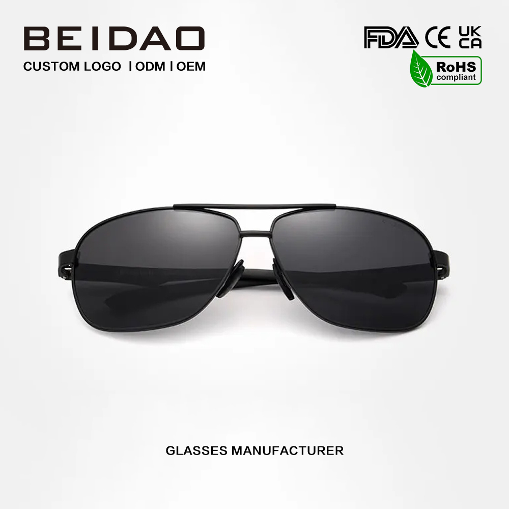 Es un gran honor para usted ver estas gafas icónicas de Beidao y se las presentaré: gafas de sol de aviador de aluminio negro para hombres que conducen